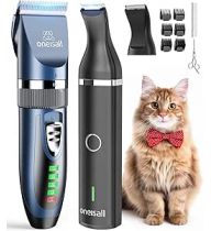 oneisall Cat Clippers and Paw Trimmer 3 in 1 Cat Grooming Kit,Cat Clippers for Matted Hair,Cordless Kitty Shaver for Matted Long Hair,2 Speed Pet Clippers