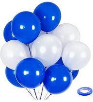 100pcs Royal Blue and White Latex Balloons 12 Inch w/Ribbon for Birthday Graduation Anniversary Wedding Bridal Shower Celebration Party Decorations Supplies