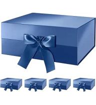 HAPPY POTATO 5 Blue Gift Boxes with Lids and Ribbon 9x6 5x3 8 Inches, Groomsmen Proposal Boxes, Magnetic Gift Boxes for Presents (Glossy Blue, Pack of 5)