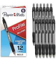 Paper Mate Profile Retractable Ballpoint Pens, Bold Point (1.4mm), Black Ink, 12 Count - Writing, Journaling, Office Supplies
