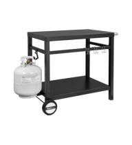 Gourmet Dining Cart Table with Double-Shelf, Movable Stainless Steel Flattop Grill Cart, Hooks, Side Handle, Multifunctional PC3401B (Black)