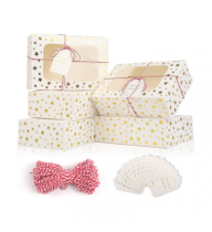 Gold Cookie Boxes with Window for Treat and Pastry, 9x6x3in White Bakery Boxes for Gift Giving,Christmas Chocolate Covered Strawberries
