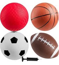 Sports Balls for kids & Toddlers - (Pack of 4) 5-inch Sports Balls Set includes Football, Small Soccer Ball, Basketball, and Playground balls, Fun indoors & Outdoor toys (Hand Pump Included)