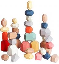 BESTAMTOY 36 PCS Wooden Sorting Stacking Rocks Stones,Sensory Toddler Toys Learning Montessori Toys, Building Blocks Game for Kids 3 4 5 6 Years Boy and Girl Birthday Gifts for Kids