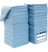 S&T INC. 100 Pack Microfiber Cleaning Cloth, Bulk Microfiber Towel for Home, Reusable Microfiber Towels for Cars, Light Blue, 11.5 in. x 11.5 in., 100 Count