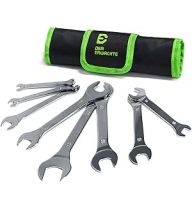 Super-Thin Open End Wrench Set, Metric, 8-Piece, Including 6, 7, 8, 9, 10, 11, 12, 13, 14, 15, 16, 17, 18, 19, 22, 24 mm, Slim Spanner Wrench Set with Rolling Pouch