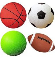 AppleRound Pack of 4 Toy Sports Balls with 1 Pump for Toddlers and Kids: 5-Inch Basketball, 5-Inch Soccer Ball, 5-Inch Playground Ball, 6.5-Inch Football (Mixed Bundle)