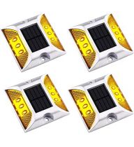 Aolyty Solar Driveway Dock Lights, IP68 Waterproof Solar Deck Lights Outdoor Warning Step Lights Reflective Road Marker for Sidewalk Stair Garden Pathway Walkway (4 Pack, Yellow)