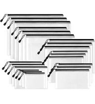 SUNEE Multisize Mesh Zipper Pouches (Black, 21 Packs), Water-Resistant Zip Bag for School Office Supplies, Puzzles & Games Organizing Storage