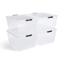 Rubbermaid Cleverstore 74 Qt Clear Storage Bins with Latching Lids, 4-Pack, Stackable, BPA-Free, Made in USA
