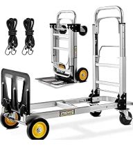 Convertible Hand Truck Dolly 3-in-1, Aluminium Hand Dolly Cart 440LB Capacity Fodable with Rubber Brake-Wheels, Anti-Slip Strip and 2 Elastic Rope