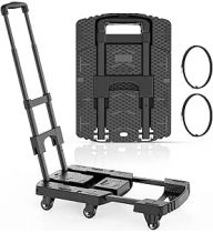 SPACEKEEPER Folding Hand Truck, 500 LB Heavy Duty Luggage Cart, Utility Dolly Platform Cart with 6 Wheels & 2 Elastic Ropes for Luggage, Travel, Moving, Shopping, Office Use, Black