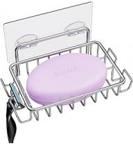 Nieifi Bar Soap Holder for Shower Wall with 4 Hooks, Stainless Steel Adhesive Soap Dish for Bathroom, Silver