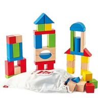 Hape Maple Wood Kids Building Blocks Stacking Wooden Block Educational Toy Set for Toddlers, 50 Brightly Colored Pieces in Assorted Shapes and Sizes