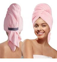 Microfiber Hair Towel Wrap for Women, Quick Dry Hair Turban Towel with Elastic Band, Microfiber Plopping Towel for Curly Hair, Stocking Stuffers for Women (Pink)