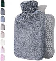 Qomfor Hot Water Bottle with Soft Cover - 1.8L Large - Hot Water Bag for Pain Relief, Neck and Shoulders, Feet Warmer, Menstrual Cramps, Hot and Cold Therapy - Great Gift for Women - Dark Grey