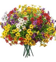 Grunyia Artificial Fake Plants Flowers for Outdoor Spring Decoration, 16 Bundles Faux Silk Colorful Daisy UV Resistant Realistic for Outside Porch Patio Home Yard Garden Planters Pots Window Box(Mix)