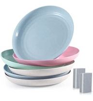 Wheat Straw Plates 10 Inch (6 Pack), Microwave Safe Plate - Unbreakable Deep Dinner Plates and Dishwasher Safe Plastic Plates Reusable for Kids Toddlers Adults, with 2 Sponges