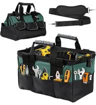 15 Inch Tool Bag, 15-pocket Heavy Duty Tool Bag with Adjustable Shoulder Strap,Wide Mouth Tool Bags Organizer, Large Capacity Waterproof Tool Tote for Men Electrician Carpenter Mechanic