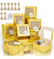 KPOSIYA 65PCS Bakery Boxes with Window 6x6x3 Inches 5 Style Cookie Boxes Small Pastry Boxes for Candy, Dessert, Pastry, Donuts, Birthday Party, Wedding(Gold)