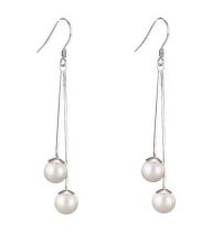 Sterling Silver Freshwater Pearl Threader Dangle Drop Earrings Threader Tassel Dangling Charm Hoop Earrings Long Chain Hook Earring Fashion Jewelry Gifts for Women Girls BFF