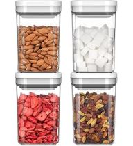 MR.SIGA 4 Pack Airtight Food Storage Container Set, BPA Free Kitchen Pantry Organization Canisters with One-handed Leak Proof Lids, 1L / 33.8oz, Medium, White