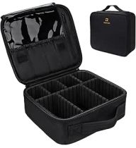 Relavel Travel Makeup Train Case Makeup Cosmetic Case Organizer Portable Artist Storage Bag with Adjustable Dividers for Cosmetics Makeup Brushes Toiletry Jewelry Digital Accessories Black