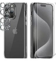 Mocalz for iPhone 15 Pro Max Case, Clear Case [Non Yellowing] [Military Grade Protection] with 2X Tempered Glass Screen and 2X Camera Lens Protectors, Shockproof and Air-Guard Corners