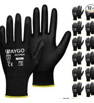 KAYGO Safety Work Gloves PU Coated-12 Pairs, KG11PB, Seamless Knit Glove with Polyurethane Coated Smooth Grip on Palm & Fingers, for Men and Women, Ideal for General Duty Work (Large, Black)