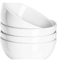 DOWAN 22 OZ Ceramic Soup Bowls & Cereal Bowls - 6" White Bowls Set of 4 for Soup, Cereal, Oatmeal, Fruit, Rice - Dishwasher & Microwave Safe