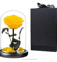 Preserved Rose Yellow Real Rose in Glass Dome, Roses Valentines Day Gifts for Her, Birthday Gifts for Women, for Wife, for Her(Medium)