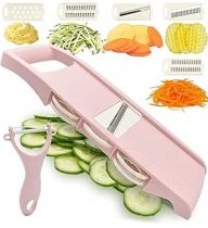 Mandoline Slicer for Kitchen Slicer Vegetable Cutter 5 In 1 Veggie Slicer Potato Slicer waffle fry cutter Hot Swap Mandolin with Peeler for Vegetables Carrot Shredder Cucumber Slicer