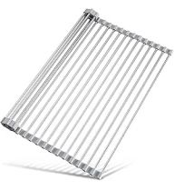 Tomorotec 17.7" x 15.5" Roll Up Dish Drying Rack Over Sink Drying Rack Sink Cover Kitchen Sink Accessories Gadget Multipurpose Organizer Foldable Stainless Steel Drainer (Grey)