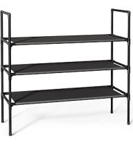 Shoe Rack with Non-Woven Fabric - 3-Tier Shoe Organizer for Closet, Garage, Corridor & Entryway, Sturdy and Stackable, X-Large, Black