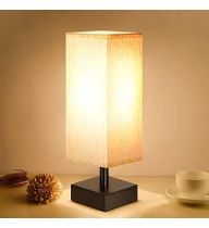 Small Table Lamp for Bedroom - Bedside Lamps for Nightstand, Minimalist Night Stand Light Lamp with Square Fabric Shade, Desk Reading Lamp for Kids Room Living Room Office Dorm