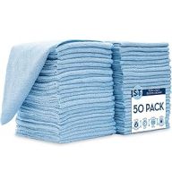 S&T INC. 50 Pack Microfiber Cleaning Cloth, Bulk Microfiber Towel for Home, Reusable Microfiber Towels for Cars, Light Blue, 11.5 in. x 11.5 in., 50 Count