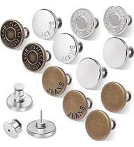 8 Sets Button Pins for Jeans Pants, Adjustable Reusable Jean Buttons Pins Instant Reduce Loose Jeans, No Sew and No Tools Metal Pants Button Replacement, Clips Jean Button Tightener