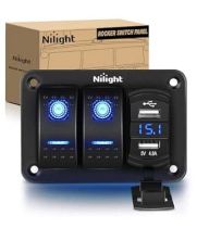 Nilight - 90116C 2 Gang Rocker Switch Panel with 4.8 Amp Dual USB Charger Voltmeter Waterproof 12V-24V DC Rocker Switch with Night Glow Stickers for CarsTrucks Boats RVs,Blue