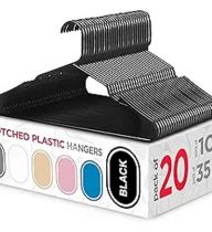 Sharpty Plastic Hangers, 20-Pack, Slim, Space Saving, Heavy Duty, Notched, Durable, Smooth, Fabric-Friendly, Ideal for Clothing, Coats, Shirts, Ties, Belts, Accessories - Black