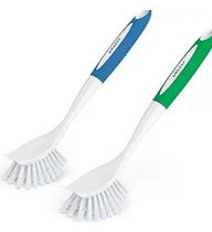 Amazer Dish Brush with Handle, 2 Pack Kitchen Scrub Brushes for Cleaning, Dish Scrubber with Stiff Bristles for Sink, Pots, Pans