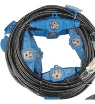 30 Feet Multi Outlet Extension Cord 12 Gauge,7 Nema 5-15R Evenly Spaced Outlets with Blue Indicators.Male Plug to Female Connector.ETL Listed, Black&Blue, 12 Gauge 30FT 7 Outlets