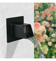 316 Stainless Steel 1.2-Inch Wall-Mounted Water Spout - Durable Outdoor Garden Square Waterfall Spillway with Integrated Spray Baffle, Modern Design for Patio, and Landscaping (Black)