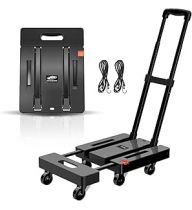 SPACEKEEPER Folding Hand Truck, 500 LB Heavy Duty Luggage Cart, Utility Dolly Platform Cart with 6 Wheels & 2 Elastic Ropes for Luggage, Travel, Moving, Shopping, Office Use, Black