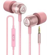 LUDOS Clamor Wired Earbuds in-Ear Headphones, 5 Years Warranty, Earphones with Microphone, Noise Isolating Ear Buds, Memory Foam for iPhone, Samsung, School Students, Kids, Women, Small Ears - Pink