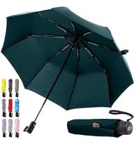 GORILLA GRIP Strong Windproof Stick Compact Umbrella for Rain, One-Click Automatic Open and Close, Durable Quick Dry Waterproof Material, Lightweight, Portable, Travel Size Fits Backpack, Hunter Green