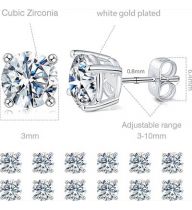 18K White Gold Plated 3-8mm Round Cubic Zirconia Stud Earring Pack of 6 Pairs