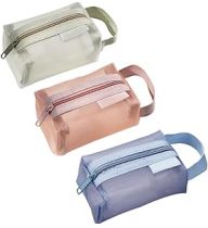 3pcs Portable Square Mesh Storage Bag,Zippered Mesh Cosmetic Bag,Small Square Mesh Coin Purse Travel Storage Carry Pouch (Green+Pink+Blue)