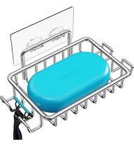 Nieifi Bar Soap Holder for Shower Wall with 4 Hooks, Stainless Steel Adhesive Soap Dish for Bathroom, Silver