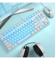 MageGee 75% Mechanical Gaming Keyboard with Blue Switch, LED Blue Backlit Keyboard, 87 Keys Compact TKL Wired Computer Keyboard for Windows Laptop PC Gamer - Blue/White