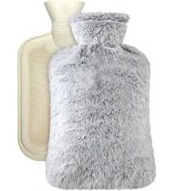 Large Hot Water Bottle with Cover, 2 Litre, Premium Natural Rubber Hot Water Bag, Soft Fleece Cover for Pain Relief, Back, Neck and Shoulders & Warm Cosy Nights (Grey)